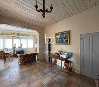 Un séjour-salon chaleureux, conservant le cachet de la maison d'origine.