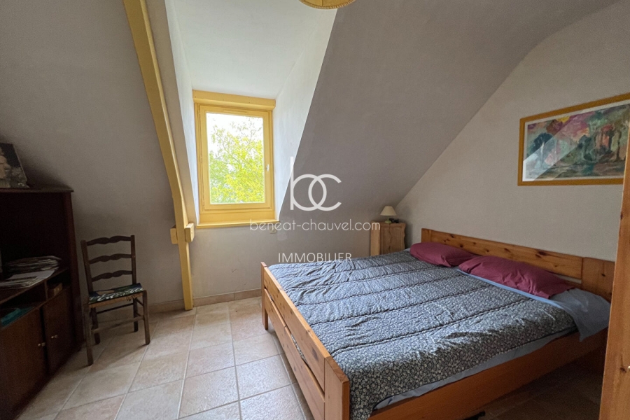A l'étage, une seconde pièce de vie avec kitchenette distribue quatre chambres, deux salles de bains et un WC. Cet agencement permet une grande flexibilité. Bien que la maison soit pleine de charme, un rafraîchissement et une modernisation sont à envisager selon vos envies, offrant l'opportunité de personnaliser entièrement ce lieu d'exception.