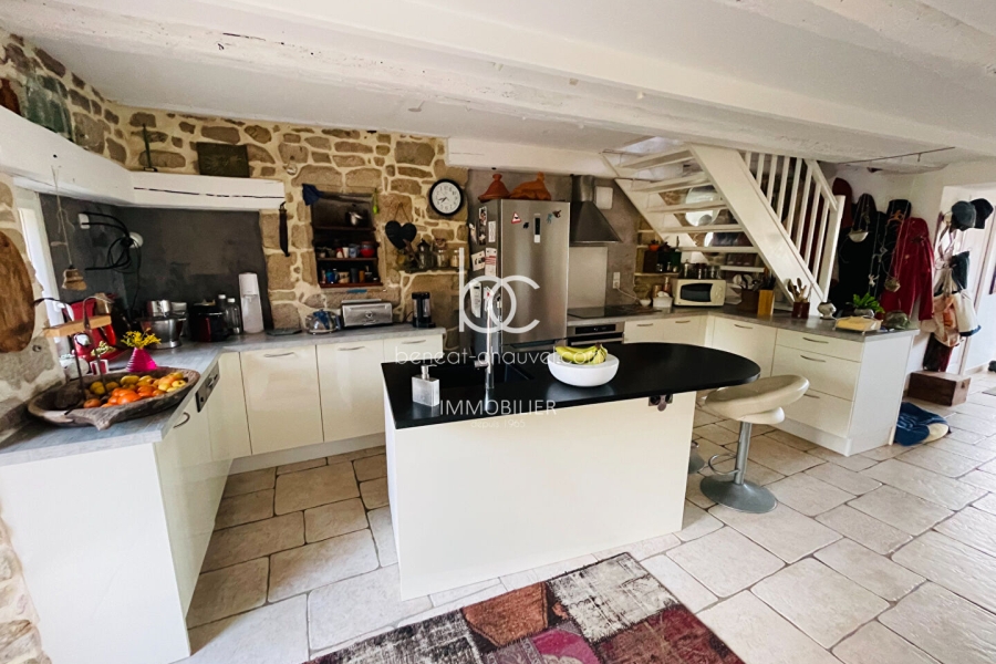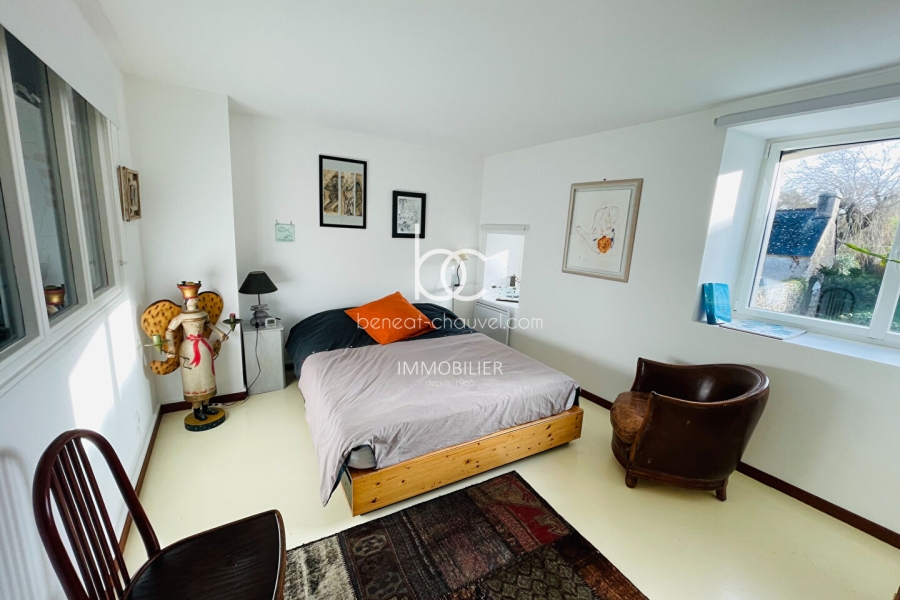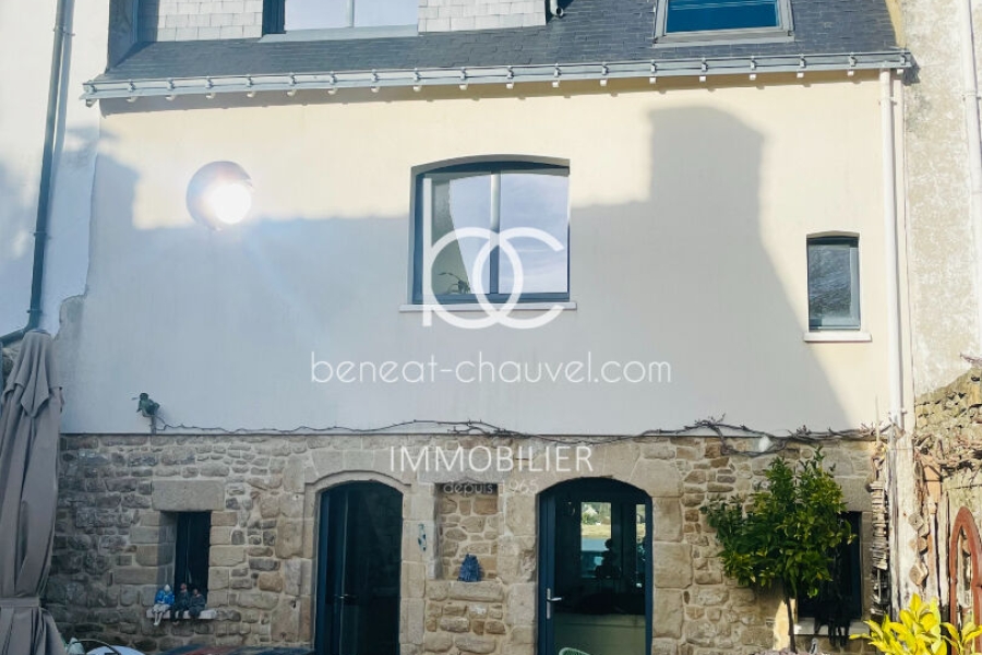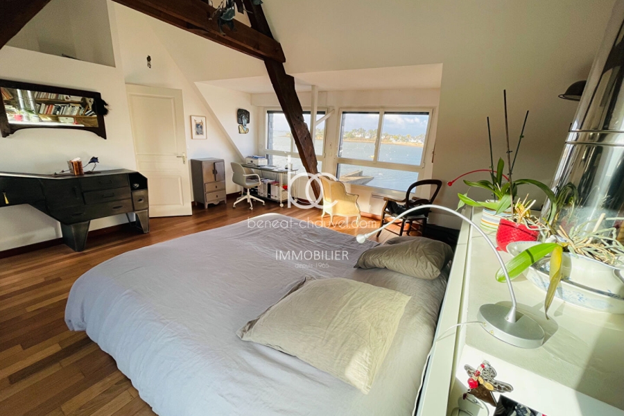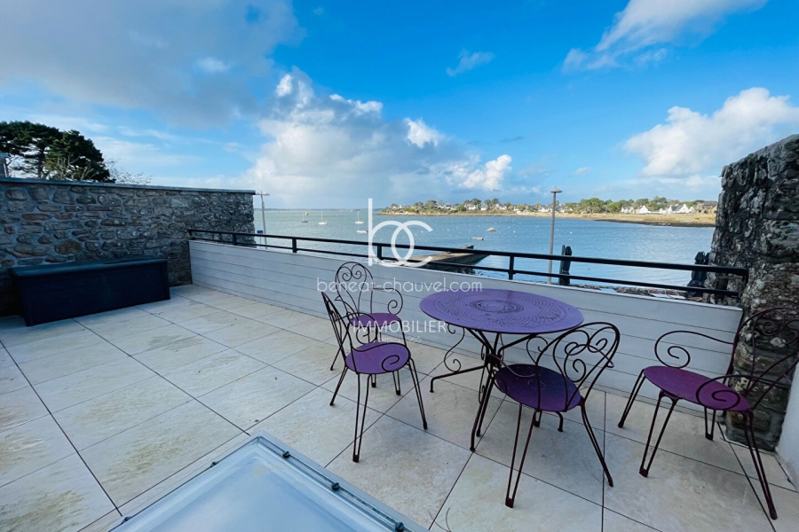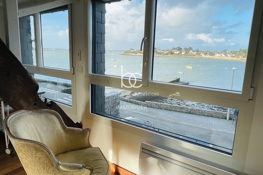 ARZON (56640) - MAGNIFIQUE VUE SUR LA RADE DE PORT NAVALO pour cette maison rénovée avec goût, à proximité immédiate d'une petite plage et des commerces. Cette maison de caractère dispose, au rez-de-chaussée, d'une grande pièce de vie vue mer avec foyer insert, d'une cuisine aménagée et équipée, d'un WC et d'un accès à une terrasse en bois donnant sur le jardin clos de murs en pierres d'environ 750 m².