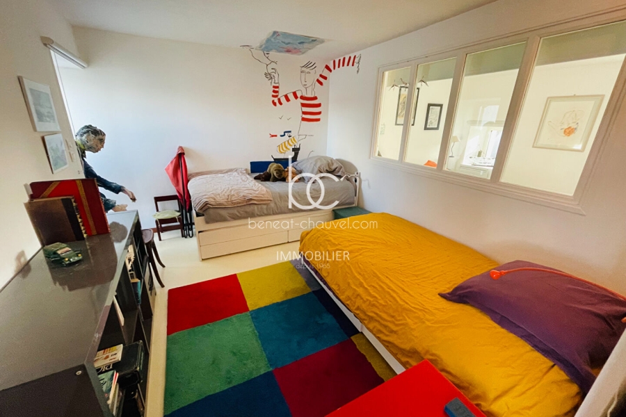 Au deuxième et dernier étage se trouve une suite parentale vue mer avec salle d'eau et WC.