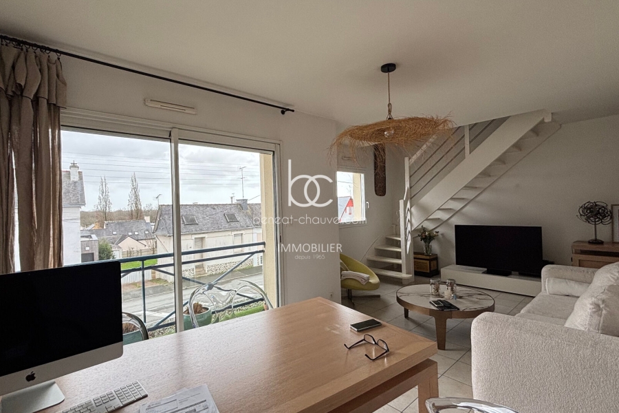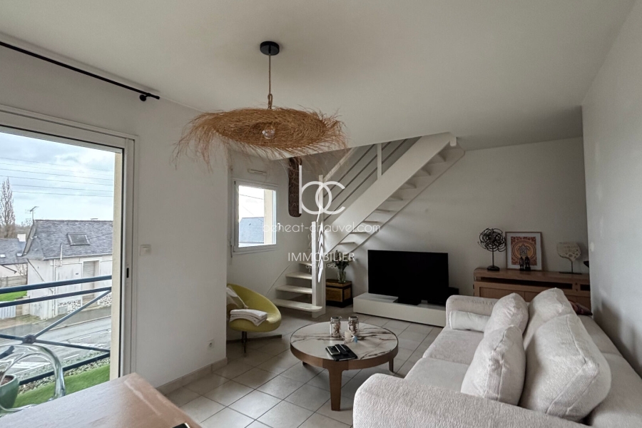 Vannes le Grador, très agréable appartement de 80 m² au sol (67m²12 carrez), comprenant : Hall, séjour salon sur terrasse, cuisine équipée, wc. En duplex : 2 grandes chambres, salle de bains. Cave et parking complètent l'offre.